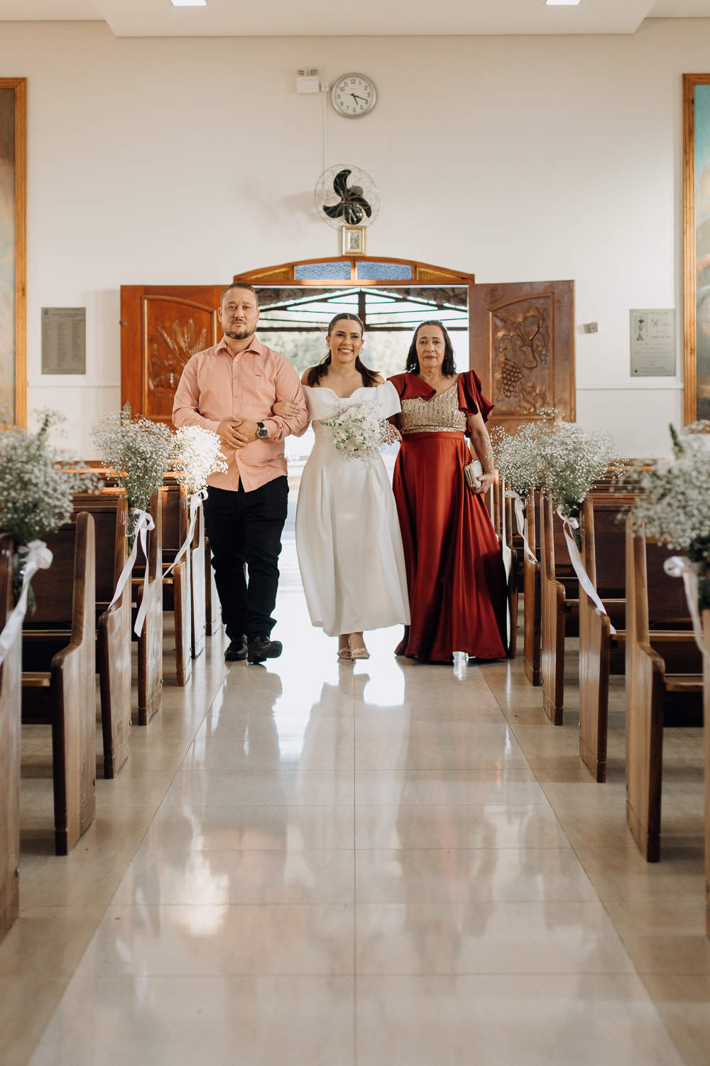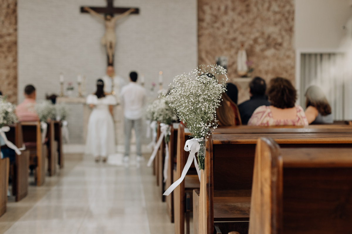 Na suavidade da fé e na beleza da promessa eterna, Grazi e Douglas selaram seu amor diante de Deus. O altar da Igreja tornou-se testemunha de um momento sagrado, em que duas vidas se uniram para caminhar lado a lado, em devoção e esperança.