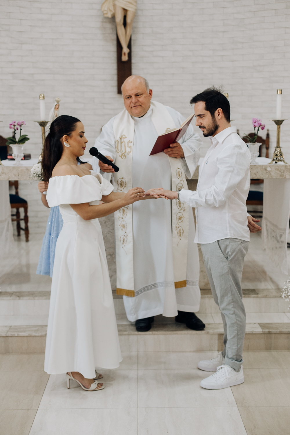 Entre a luz que atravessava os vitrais e os olhares cheios de emoção, cada gesto carregava significado: o toque das mãos, o brilho nos olhos e o “sim” pronunciado com o coração inteiro.