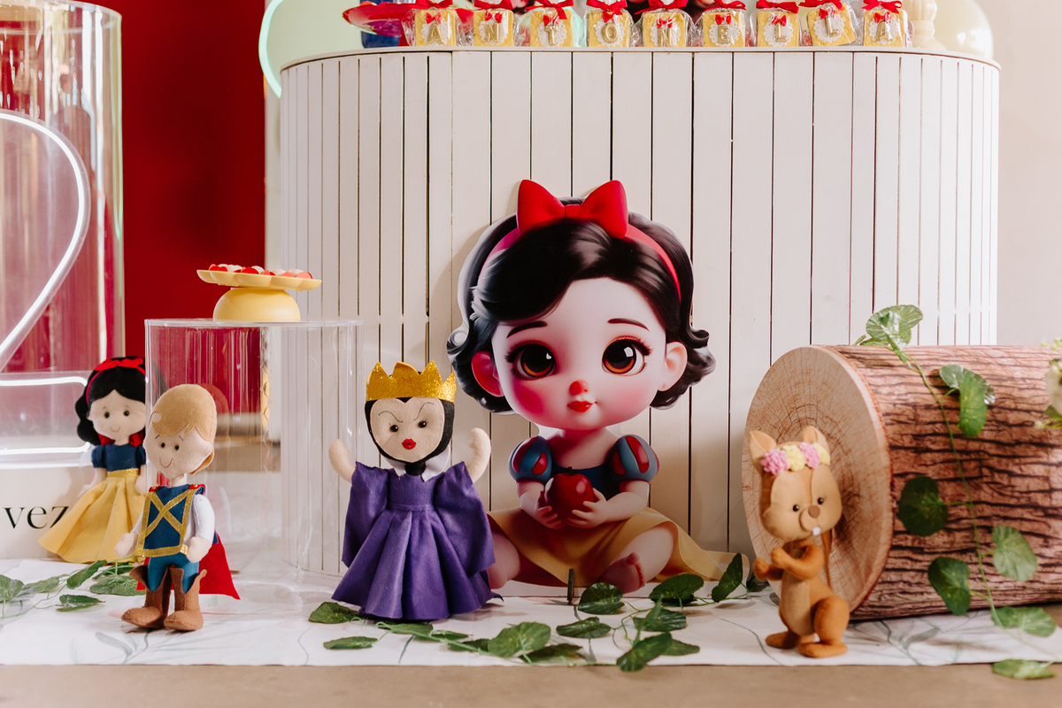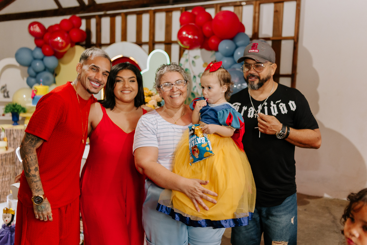 Em um cenário encantado da Branca de Neve, cada detalhe parecia contar uma história: risadas, abraços, cores e momentos que vão ficar guardados para sempre.